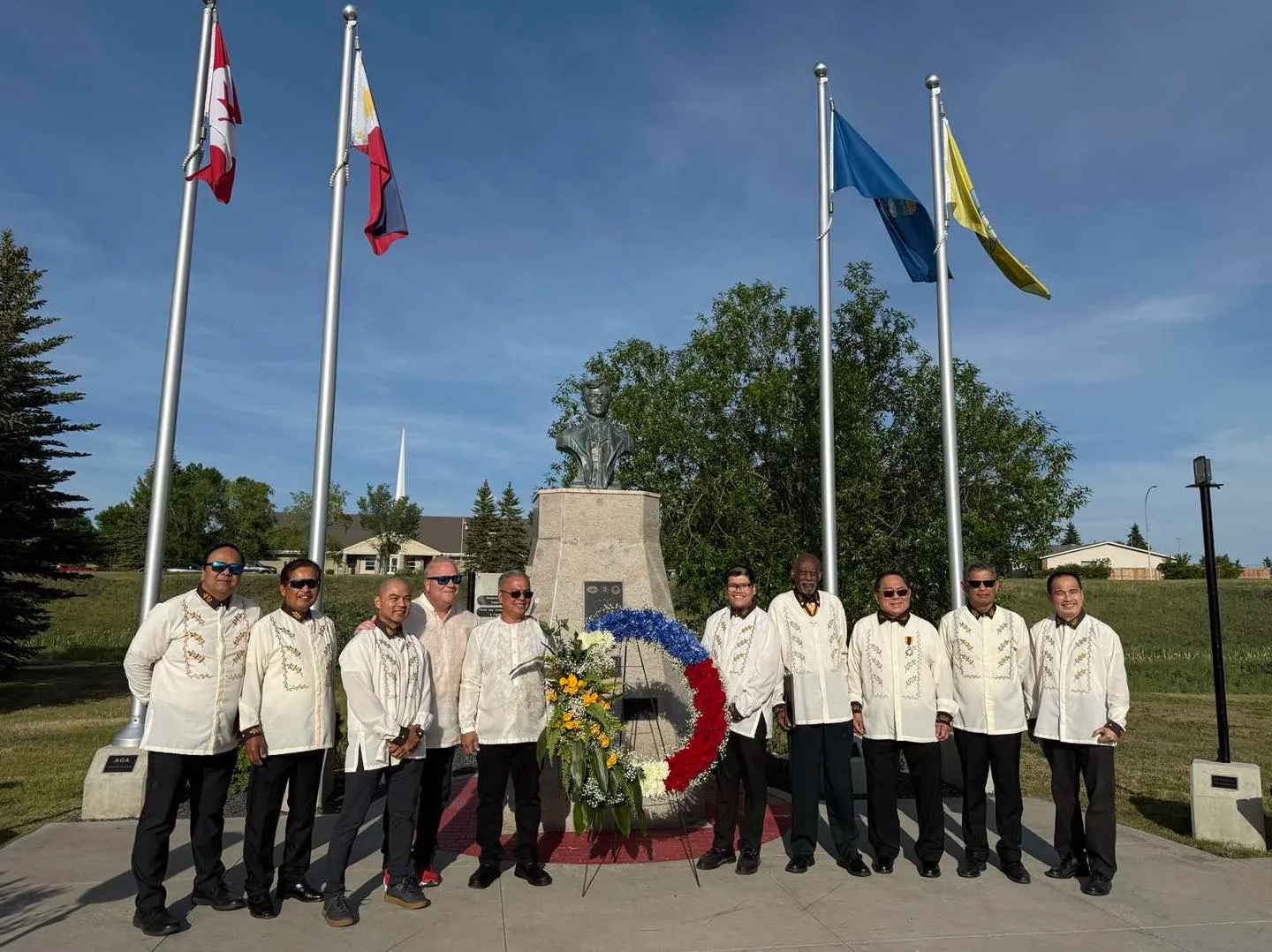 In celebration of the 164th Anniversary of the birth of Dr Jose Rizal, Philippine Consulate General in Calgary, Knights of Rizal, City of Airdrie and the Filipino Airdrie Association held a simple wreath laying ceremony at the Rizal Monument at Nose Creek Regional Park, Airdrie, Alberta this evening.