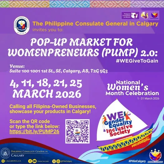 In celebration of the 2026 National Women’s Month and in the spirit of #WEGiveToGain, we are calling all Filipina-owned businesses in Calgary to showcase your products at the Philippine Consulate General in Calgary!