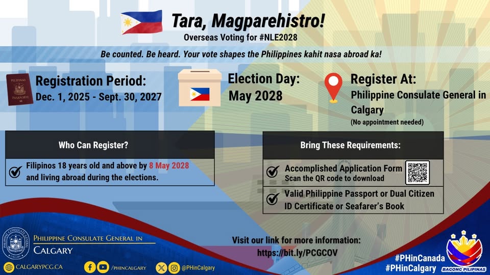 Kabayan, make sure your voice is counted in the 2028 National Elections, register as an Overseas Voter today.
