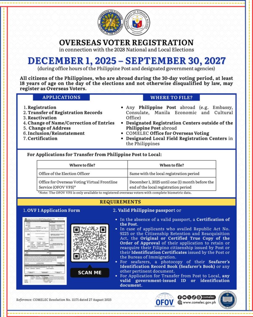 For more information, visit Office for Overseas Voting PH